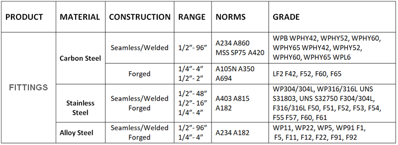 K.Z.. supply a complete range of butt-weld and forged fittings in carbon steel and stainless steel products in all sizes and construction from ½” to 96 NPS. Materials are approved manufacturer with international recognitions and approval.