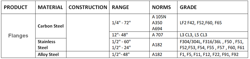We are keeping a wide range of flanges of „— Stainless Steel and Carbon • Steel under international standards, testing and chemical compositions like; ASTM A182 TP 304 / L, 316 / L for SS flanges, ASTM Al 05N, A350 LF2 for CS Flanges and in various rating from 150#, 300# or more, and Available in various shapes such as Slip on, Weld neck, Blind, Socket Weld Screwed & Lap joint.